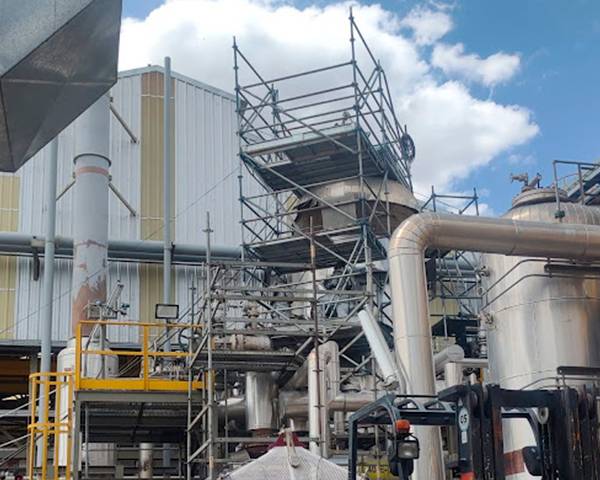 El objetivo de esta etapa era liberar el reactor viejo y dejarlo en condiciones de ser desmontado. Para lo cual se realizó el montaje de andamios alrededor del equipo y se procedió al desmontaje de líneas y pasa hombres para realizar la descarga.
